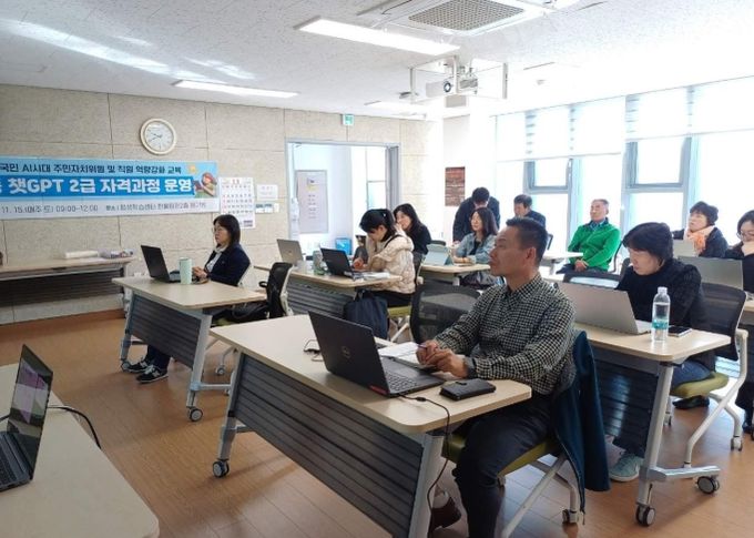 [ 중앙뉴스미디어 ] 이천시 관고동 주민자치회는 전국민 인공지능(AI) 시대를 준비하기 위해 직원, 학습센터 강사, 주민자치위원 등 14명을 대상으로 챗지피티(Chat GPT) 2급 자격 과정을 11월부터 매주 토요일 총 4회 운영한다고 밝혔다.