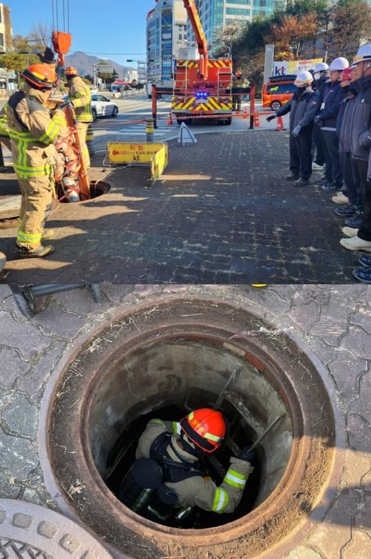 이날 훈련에는 남양주소방서 구조대원과 KT 관계자 등 총 27명이 참가했으며, 구조대 사무실에서 진행된 밀폐공간 사고사례 및 안전수칙 이론교육을 시작으로, 통신구 현장에서 다목적 삼각구조대 설치, 유해가스 측정장비 운용, 수직·수평 구조기법 실습 등 현장 중심의 교육이 이어졌다. 구조대원들은 실제 통신구 진입 과정을 반복 숙달하며 구조 절차의 정확성과 장비 조작 능력을 점검했다.