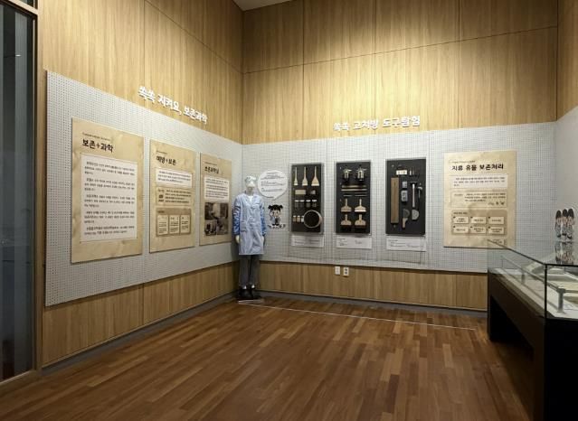 보존 과학자의 역할과 지류 유물 보존 처리 과정을 단계적으로 보여주는 전시다. 관람객이 보존과학 개념과 필요한 도구·재료·복원 절차를 쉽게 이해하도록 구성했다.