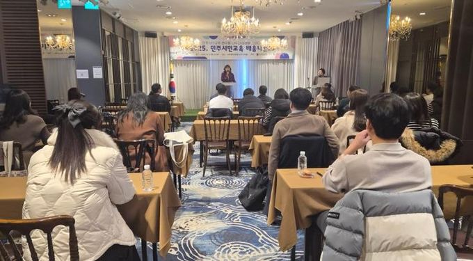 [ 중앙뉴스미디어 ] 충청북도교육청은 9일 오후, 오창 제이원 호텔에서 도내 교원 및 교육전문직 60여 명이 참석한 가운데 민주시민교육 배움나눔회를 진행했다.
