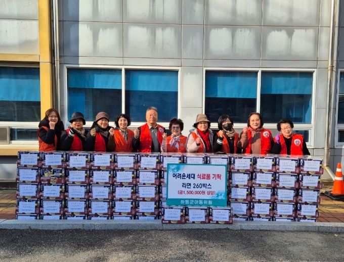 [ 중앙뉴스미디어 ] 하동군아동위원협의회(회장 정종수)가 연말 나눔 활동의 일환으로 관내 취약계층 아동 10세대에 라면 260상자(컵라면, 일반·짜장라면 세트)를 전달했다.