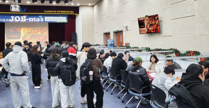 [ 중앙뉴스미디어 ] 경상국립대학교 해양과학대학 해양수산미래교육원(원장 안영수)은 12월 17일 해양생물교육연구센터 1917홀에서 ‘라이즈(RISE) 연구특화 워케이션’ 해양과학대학 직무박람회 ‘이음표 잡마스(JOB-mas)’를 개최했다.