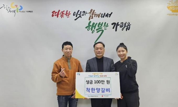 [ 중앙뉴스미디어 ] 가평군 가평읍 경춘로 소재 착한양갈비는 지난 19일 행정복지센터를 방문해 이웃돕기 성금 100만 원을 기탁했다.
