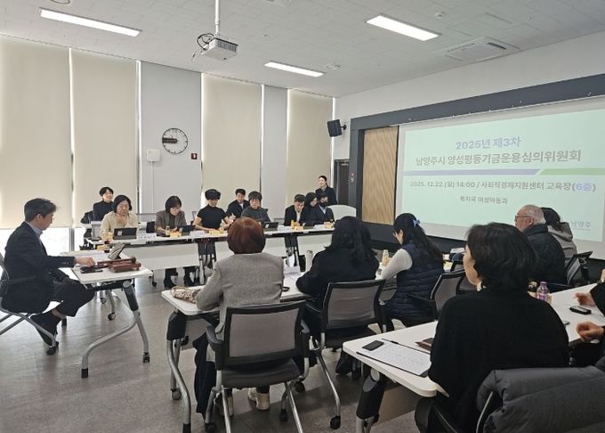 [ 중앙뉴스미디어 ] 남양주시는 22일 남양주사회적경제지원센터에서 ‘2025년 제3차 남양주시 양성평등기금운용심의위원회 및 성과공유회’를 개최하고, 올해 추진한 양성평등기금 지원사업의 성과를 공유하며 2026년도 사업방향을 논의했다고 밝혔다.