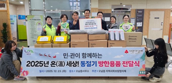 [ 중앙뉴스미디어 ] 남양주시는 23일 오남읍 지역사회보장협의체가 ‘2025년 온(溫)세상! 동절기 방한용품 지원’사업을 통해 본격적인 한파를 앞두고 취약계층 보호에 나섰다고 밝혔다.