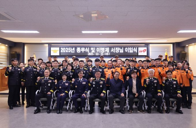 이번 종무식은 이명제 서장을 포함한 소방공무원, 의용소방대연합회장 등 소방가족 60여 명이 참석한 가운데 2025년 한해를 뒤돌아보고 새해 업무 방향에 대한 각오와 결의를 다지는 시간을 가졌다.