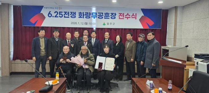 [ 중앙뉴스미디어 ] 울산 울주군이 12일 울주군 보훈회관에서 6.25참전유공자 고(故) 이영숙 병장의 동생 이한웅씨에게 화랑무공훈장을 전수했다.