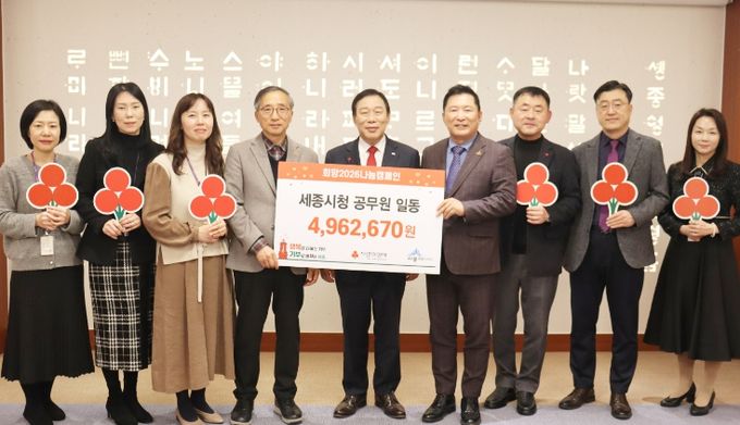 [ 중앙뉴스미디어 ] 세종사회복지공동모금회에 따르면 14일 14시30분 세종시청 5층 세종실에서 최민호 세종시장, 박상혁 세종모금회장, 김윤회 세종모금회 부회장 등이 참석한 가운데 ‘희망2026나눔캠페인 희망성금 전달식’을 가졌다.