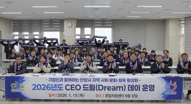 [ 중앙뉴스미디어 ] 안양산업진흥원은 15일 오후 3시30분 안양창업지원센터 강당에서 관내 기업인 150여 명을 대상으로 지역사회 문화·체육 활성화를 위한 ‘2026 CEO 드림(Dream) 데이’를 열었다.