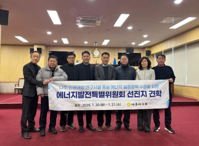 [ 중앙뉴스미디어 ] 나주시의회 에너지발전특별위원회는 인공태양 연구시설 유치 이후의 안정적인 운영 전략과 제도적 과제를 점검하기 위해 지난 1월 20일부터 21일까지 청주시 일원에서 선진지 견학을 실시했다.