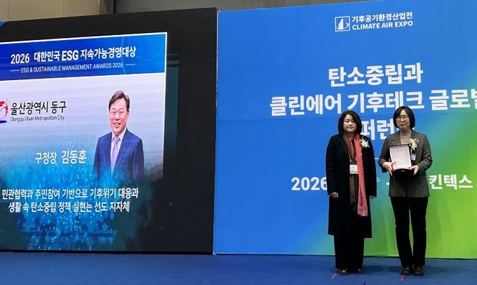 [ 중앙뉴스미디어 ] 울산 동구는 환경일보와 한국환경경영학회가 공동으로 주최하는 2026 대한민국 ESG 지속 가능 경영대상에서 전국 19개 대상 수상기관 중 하나로 선정되는 영예를 안았다.