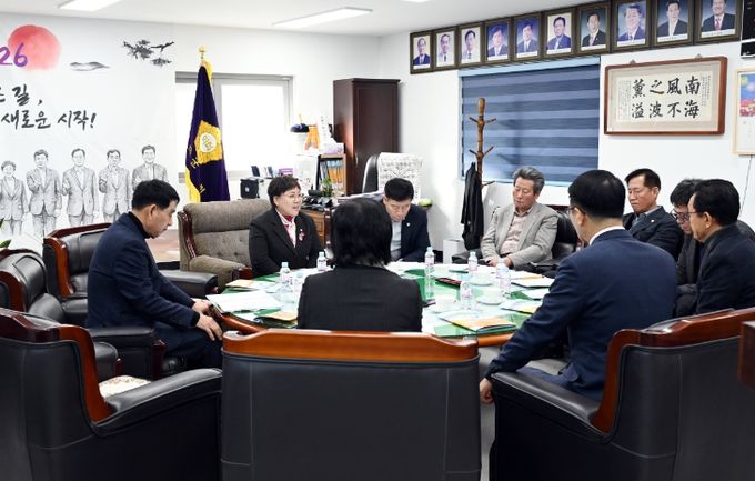 주요 현안은 △2026년도 2월 공모사업 신청 현황 보고 △2024회계연도 남해군 기금운용 성과분석 결과 △'농어촌 기본소득 지방정부 협의회' 구성 △(가칭)해양학생교육원 설립 남해군 대응투자 계획 △지적재조사사업 조정금 징수·지급 계획 △왕지 벚꽃길 구운몽길 탐방로 조성사업 △남해바래길 구운몽길 탐방로 조성사업 △군관리계획(국립공원) 결정(변경)의 건 △군관리계획(상주인생학교) 결정(변경)의 건 등 9건이다.