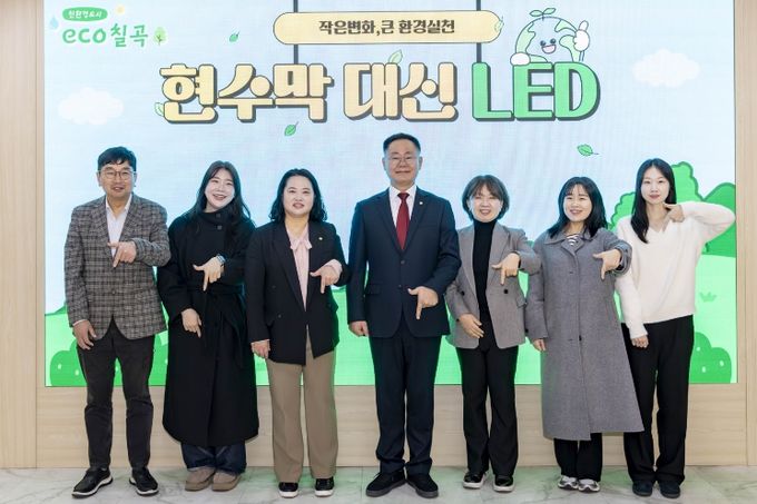 칠곡군청에서 행정 행사의 풍경이 달라지고 있다. 연말·연초 각종 수상과 공모사업 선정, 기탁식 때마다 사용되던 현수막과 스티로폼 폼보드가 사라지고, 대신 대형 LED 전광판이 활용되고 있다.
