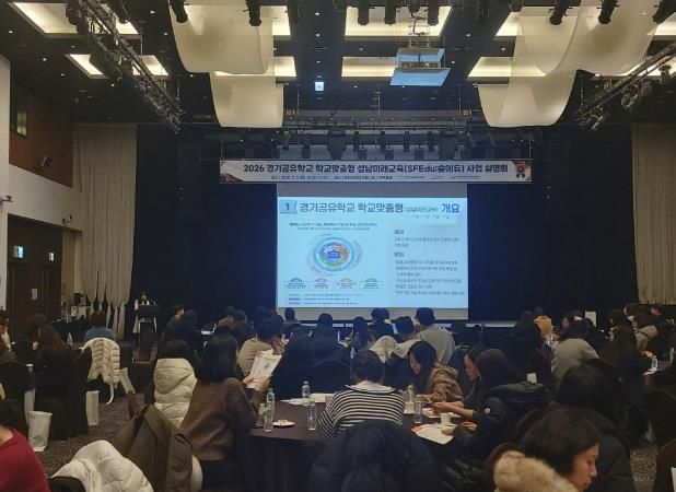 [ 중앙뉴스미디어 ] 경기도성남교육지원청은 5일 밀리토피아호텔에서 관내 초·중·고·특수학교 교원 및 지자체 관계자 등 300여 명이 참석한 가운데 ‘2026 경기공유학교 학교맞춤형 성남미래교육(숲에듀) 사업설명회’를 개최했다.