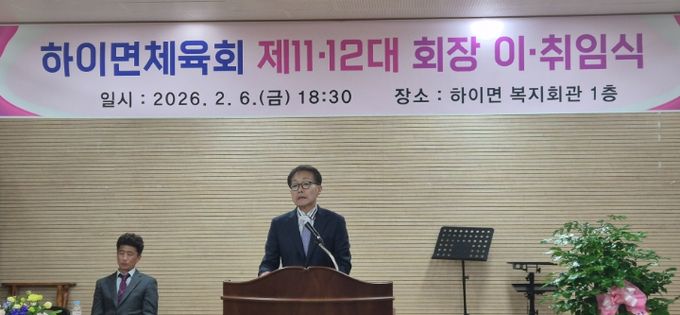 이날 2024년부터 2년 동안 하이면 체육회 발전과 활성화에 기여한 제11대 우상원 체육회장이 이임하고, 제12대 강기태 체육회장이 취임했다.