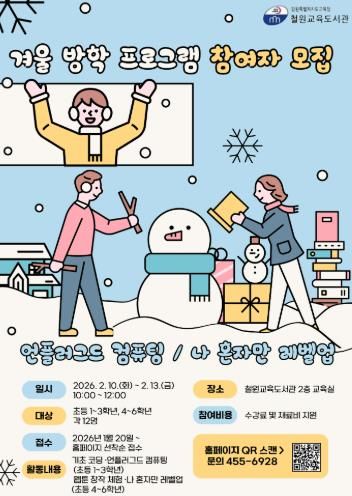 [ 중앙뉴스미디어 ] 철원교육도서관은 2026년 겨울방학을 맞아 초등학생을 대상으로 디지털 창의 교육 프로그램을 운영한다.