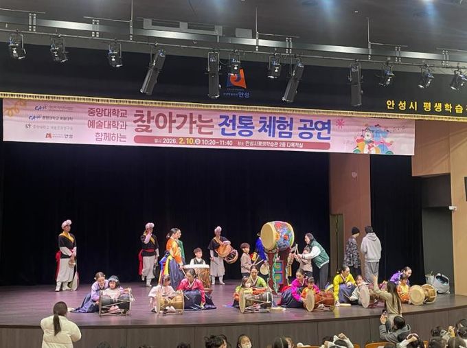 [ 중앙뉴스미디어 ] 안성시는 2월 10일 오전 10시 안성시평생학습관 2층 다목적실에서 열린 ‘찾아가는 전통 체험 공연 시즌 2 – 춤과 연희가 함께하는 무대’가 150여 명의 시민이 함께한 가운데 큰 호응 속에 성황리에 마무리됐다고 밝혔다.