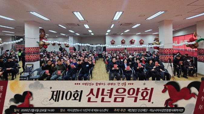 [ 중앙뉴스미디어 ] 2026년 붉은 말의 해 병오년을 맞이하여 하남시미사강변종합사회복지관과 재단법인 진선재단은 지난 6일 ‘제10회 지역주민 신년음악회’를 공동 주최·주관하고, 300명 이상의 지역주민이 참석한 가운데 새해의 힘찬 시작을 알렸다.