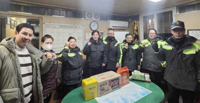 [ 중앙뉴스미디어 ] 동두천시 보산동 행정복지센터는 지난 10일 설 연휴를 앞두고 지역 치안을 위해 묵묵히 근무하는 자율방범대원들을 격려하고자 관내 태풍지대 방범초소를 방문해 감사의 뜻을 전했다.