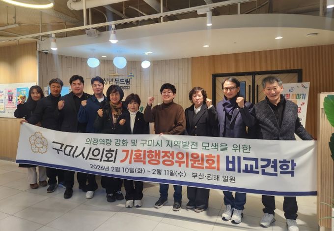 [ 중앙뉴스미디어 ] 구미시의회 기획행정위원회(위원장 장미경)에서는 2월 10일 화요일부터 11일 수요일까지 1박 2일간 제293회 구미시의회 임시회 폐회 중 부산 및 김해 일원의 선도 시설을 방문하여 청년 지원, 보훈 행정, 유휴 공간 재생 정책 전반을 살펴보았다.