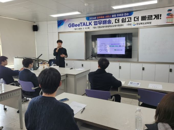 [ 중앙뉴스미디어 ] 경북교육청은 12일 안동시에 있는 안동교육지원청 학교교육지원센터 대회의실에서 도내 학교지원센터 담당 장학사, 업무 배송 주무관, 업무 배송 팀장 등 약 80명을 대상으로‘2026 모두를 위한 업무 배송 서비스 운영자 연수’를 개최했다고 밝혔다.