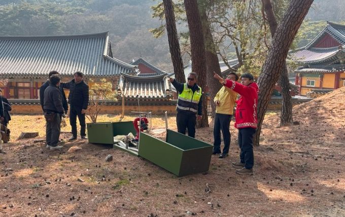 양산시는 산불·화재에 대비해 국가지정 목조건축물이 위치한 신흥사와 통도사를 방문 현장 점검을 실시했다. 이번 점검은 목조 국가유산을 중심으로 방수포·소화기 등 소방시설 유지관리 상태, 자동화재탐지설비 작동 여부 등을 집중적으로 확인했다. 또 산불 발생 시 신속한 초기 대응이 가능하도록 CCTV 방범설비 운영 현황, 화재 대응 매뉴얼 정비 상태 등도 함께 점검했다.