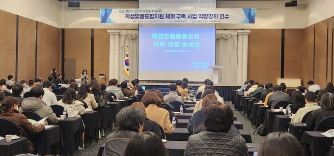 이번 연수는 학생맞춤통합지원 체계 구축 사업에 대한 현장의 이해를 높이고, 학교와 교육지원청 담당자의 실천 역량을 강화하는 한편, 운영 사례 공유를 통해 제도의 현장 안착과 통합지원에 대한 인식을 제고하기 위해 마련됐다.