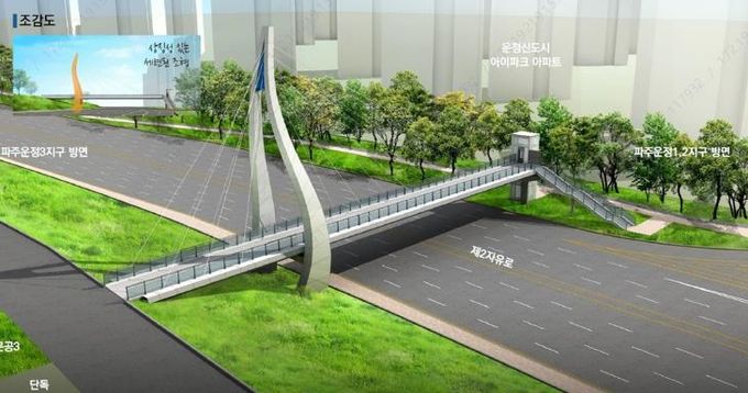 [ 중앙뉴스미디어 ] 파주시는 한국토지주택공사(LH)가 제2자유로로 단절된 운정1ܨ지구 한울마을과 운정3지구 물향기마을을 연결하는 보도육교 설치 공사를 이달부터 본격 착공한다고 밝혔다.