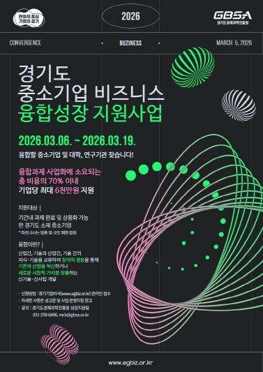 [ 중앙뉴스미디어 ] 경기도와 (재)경기도경제과학진흥원이 도내 중소기업의 혁신 성장과 새로운 비즈니스 모델 발굴을 돕는 ‘2026년 중소기업 비즈니스 융합성장 지원사업’의 참여기업을 모집한다.