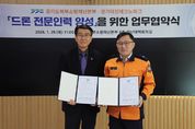 [ 중앙뉴스미디어 ] (재)경기대진테크노파크(원장 안준수)와 경기도북부소방재난본부(본부장 강대훈)는 경기북부 지역의 소방용 드론산업 육성과 전문인력 양성을 위해 업무협약(MOU)을 체결했다고 밝혔다. 이번 업무협약식에는 경기대진테크노파크 안준수 원장, 권재형 미래성장본부장, 김용국 기업성장팀장과 경기도북부소방재난본부 강대훈 본부장, 장동권 대응과장, 강건영 대응팀장이 참석해 협력 방안에 대해 논의했다. 안준수 경기대진테크노파크 원장은 “경기북부 신산업으로 주목받고 있는 드론산업 고도화를 중점적으로 추진하고 있다”며, “방위·소방 분야 등 드론 수요가 확대되는 만큼 현장 맞춤형 지원을 지속적으로 강화해 나가겠다”고 밝혔다. 이에 대해, 강대훈 경기도북부소방재난본부장은 “이번 협력을 통해 소방용 드론 운영 전문인력 양성에 그치지 않고, 차기 교육과정 고도화를 위한 현장 실무 데이터 공유 등 실질적인 성과를 창출할 수 있도록 노력하겠다”고 말했다. 권재형 미래성장본부장은 “지난해부터 경기도 위탁사업인 ‘드론아카데미 운영사업’을 통해 현장 수요를 반영한 전문인력 양성과 보유 장비 대여 등 실무 중심의 지원을 추진해 왔