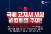 [ 중앙뉴스미디어 ] ■ 국세 고지서 사칭 해킹메일 주의! 최근 '국세 고지서.pdf(tax_notice).zip'이라는 파일명으로 국세고지서를 사칭한 악성코드가 이메일로 유포되고 있습니다. 해당 파일을 열람하지 말고 즉시 삭제하시기 바랍니다. ■ 메일 수신 시 확인해야 할 체크리스트 ① 국세청에서 보낸 메일과 문자는 홈택스에서 확인! ② 의심스러운 제목 열람 전에 삭제, 스팸메일 신고 ③ 모르는 발신자 주소 링크, 첨부파일 클릭 금지 ④ 계정정보 요구에 아이디, 패스워드 입력 금지 국세청 발신메일 진위여부는 홈택스에서 직접 확인 가능합니다! [뉴스출처 : 국세청]
