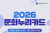 [ 중앙뉴스미디어 ] ■ 문화누리 2026년 통합문화이용권 150,000원 사회적 약자인 취약계층의 문화향유 기회를 확대하기 위해 올해 '통합문화이용권(문화누리카드)'의 연간 지원금을 전년 대비 1만 원 인상했습니다. - 청소년(13~18세)과 고령기에 진입한 사람(60~64세)에게는 지원금 1만 원을 추가한 총 16만 원 지급 · 지원대상 6세 이상 기초생활수급자 및 차상위계층 (2020.12.31. 이전 출생자) · 신청기간 2026년 2월 2일~11월 30일 (발급받은 카드는 12월 31일까지 사용) · 발급방법 전국 주민센터와 '문화누리카드' 누리집, 모바일 앱을 통해 신청·발급 · 사용처 전국 3만 5000여 개의 문화예술, 국내 여행, 체육 분야 가맹점에서 이용 (자세한 내용은 '문화누리카드' 누리집 모바일 앱 확인) [뉴스출처 : 문화체육관광부]