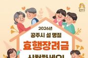 [ 중앙뉴스미디어 ] 공주시는 지역사회 효 문화 확산과 효행 문화 발전을 위해 설 명절을 맞아 ‘효행장려금’을 지급한다고 22일 밝혔다. 지급 대상은 만 75세 이상(1951년 12월 31일 이전 출생자 포함)의 직계존속과 직계비속을 포함해 3대 이상 가정을 이루고 부양하는 세대주이다. 다만, 효도 대상자가 세대주인 경우에는 부양자가 신청 대상이 된다. 또한 3대가 모두 신청일 현재 1년 이상 공주시에 주소를 두고 실제로 거주해야 한다. 지원 금액은 20만 원이며, 설 명절 전 신청자가 선택한 지급 방식에 따라 금융 계좌 또는 공주페이로 지급된다. 신청 기간은 1월 26일부터 2월 6일까지 2주간이며, 주소지 관할 읍면동 행정복지센터에 신분증을 지참해 신청하면 된다. 단, 지난 추석 명절에 효행장려금을 받은 대상자는 지급 조건과 지급 방식이 변동되지 않는 한 다시 신청할 필요가 없으며, 변동 사항이 있을 경우 신청 기간 내 재신청해야 한다. 최원철 시장은 “효의 고장 공주시에 걸맞게 효행 문화를 확산하기 위해 효행장려금 지원 등 다양한 사업을 추진하겠다”고 말했