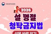[ 중앙뉴스미디어 ] ■ 2026년 설 명절 청탁금지법 선물 바로 알기 하나, 공직자에게 원활한 직무수행 또는 사교·의례 목적으로 제공되는 선물은 5만 원, 농축수산물 및 농축수산가공품 선물은 15만 원까지 가능합니다. 다만, 명절 기간*에 한정하여 농축수산물 및 농축수산가공품 선물은 30만 원까지 허용됩니다. *2026.1.24.(토)~2.22.(일) (30일간), 택배 등으로 발송 시에는 발송일자 기준 둘, 공직자의 직무와 직접적인 이해관계*가 있는 경우에는 가액 범위 내라 하더라도 원활한 직무수행, 사교·의례 목적으로 볼 수 없으므로 공직자에게 일체의 선물도 줄 수 없습니다. *인·허가신청 민원인, 입찰참여 등 유관기관, 인사·평가·감사 대상자 등과 담당 공직자 관계 셋, 농축수산물 선물에는 농산물, 축산물, 수산물뿐만 아니라 임산물도 포함됩니다. 농축수산가공품*은 농축수산물을 원료 또는 재료의 50%를 넘게 사용하여 가공한 제품만 해당합니다. *농축수산가공품 해당 여부는 소관부처인 농림축산식품부, 해양수산부에 문의 넷, 청탁금지법상 선물에 포함되는 상품권은 특정한 물품 또는 용역의 수량이 기