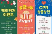 [ 중앙뉴스미디어 ] 충남소방본부 충남안전체험관은 크리스마스를 맞아 가족 단위 방문객이 함께 즐기며 안전의식을 높일 수 있는 ‘크리스마스 참여형 이벤트’를 오는 31일까지 진행한다고 9일 밝혔다. 이번 이벤트는 체험객이 직접 참여하는 심폐소생술(CPR) 키오스크 왕중왕전을 중심으로 운영되며, 체험 결과에 따라 기념품이 제공되는 등 흥미와 교육 효과를 동시에 높일 수 있는 프로그램으로 꾸며졌다. 또한 캐리커처 그리기, 팝콘 나눔 행사 등 남녀노소 누구나 즐길 수 있는 다채로운 부대 프로그램도 마련돼 가족 단위 방문객의 높은 관심이 기대된다. 안전체험과 함께 작은 축제 분위기를 느낄 수 있도록 구성된 것이 특징이다. 박창우 충남안전체험관장은 “가족들이 자연스럽게 안전을 배우고 익힐 수 있도록 즐거운 체험 중심의 이벤트를 준비했다”라며 “연말을 맞아 많은 도민이 방문해 따뜻한 추억을 만들고 안전교육의 가치도 함께 느껴보길 바란다”라고 말했다. 참가 신청 및 자세한 내용은 충남안전체험관 홈페이지 또는 대표전화를 통해 확인할 수 있다. [뉴스출처 : 충청남도]