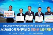 [ 중앙뉴스미디어 ] (재)2026여수세계섬박람회조직위원회는 지난 20일 서울 종로구 HW컨벤션센터에서 광주전남시도민회와 ‘2026여수세계섬박람회 입장권 5,000매 구매약정’을 체결했다고 밝혔다. 이날 약정식은 조직위원장 김영록 전남도지사와 광주전남시도민회 양광용 회장을 비롯해 향우임원 600여 명이 참석한 가운데 진행됐다. 이번 구매약정은 지난해 체결한 조직위와 광주전남시도민회 간 업무협약에 따른 결실로, 협약 이후 실제 참여와 실천으로 이어진 대규모 구매 사례다. 광주전남시도민회는 1955년 출범한 국내 최대 규모의 향우단체로, 광주광역시와 전라남도 22개 시·군 향우회로 구성돼 있으며, 약 500만 명에 이르는 출향민 네트워크를 보유하고 있다. 이번 구매약정은 이러한 조직력을 바탕으로 섬박람회 참여 붐을 확산시키는 계기가 될 것으로 기대된다. 양광용 광주전남시도민회 회장은 “섬박람회는 고향 전남과 여수의 미래 가치를 세계에 알리는 뜻깊은 행사”라며 “업무협약에 그치지 않고 실제 참여로 이어지는 모범 사례를 만들어 출향민들이 앞장서 섬박람회 성공 개최를 지원하겠다”고 말했다. &n