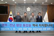 [ 중앙뉴스미디어 ] 담양군·함평군·영광군·장성군 등 전남 4개 군의회 의장단은 30일 영광군의회에서 광주–전남 행정통합을 염원하는 공동 퍼포먼스에 참여했다. 이번 퍼포먼스는 행정구역의 경계를 넘어 광주와 전남이 하나의 생활권이자 경제권으로 도약하기 위한 의지와 공감대를 확인하기 위해 마련됐다. 특히 지역 간 협력과 상생 발전의 필요성에 대해 지방의회 차원에서 뜻을 모았다는 점에서 의미를 더했다. 의장단은 “행정통합은 지역의 미래 경쟁력 확보와 균형발전을 위해 더 이상 미룰 수 없는 과제”라며 “지금이야말로 광주와 전남의 미래를 결정할 적기”라고 밝혔다. 이어 “각 시군 의회가 뜻을 모아 함께한 오늘의 행동이 향후 논의와 협력의 출발점이 되기를 기대한다”며 “군민의 의견이 충분히 반영될 수 있도록 의회 차원의 역할을 지속해 나가겠다”고 강조했다. 한편, 4개 군의회는 앞으로도 광주–전남 상생과 공동 발전을 위한 논의와 협력 활동을 이어갈 계획이다. [뉴스출처 : 영광군의회]