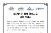 [ 중앙뉴스미디어 ] 세종·제주·강원·전북 4개 특별자치시도가 광역 행정통합에 따른 역차별을 우려하며 행정수도특별법을 비롯한 4개 특별자치시도 관련 특별법의 조속한 제정을 거듭 촉구했다. 세종특별자치시와 제주특별자치도, 강원·전북특별자치도로 구성된 ‘대한민국특별자치시도 행정협의회’는 22일 이같은 내용을 담은 4개 시도지사 명의의 공동성명서를 발표했다. 이는 최근 광역 행정통합 특별법 제정과 정부의 통합 인센티브 발표 등 행정통합 논의가 속도감 있게 진행되는 데 비해 4개 특별자치시도 관련 법안 처리는 계속 지연되고 있다는 문제의식에 따라서다. 최근 정치권에서 광주‧전남과 대전‧충남 통합 특별법 제정을 매우 속도감 있게 진행되고 있으나 이보다 먼저 발의된 ‘행정수도특별법’과 ‘강원‧제주‧전북특별법’ 입법은 논의 조차 되지 않는 상황이다. 또한, 정부의 ‘5극3특 균형성장’이라는 국정과제 안에서 4개 특별자치시도에 대한 지원 방안이 전혀 없고, 통합특별시에 비해 상대적 박탈감과 지역 불균형이 더 벌어질 수 있다는 문제점이 제기되고 있다. 이에 협의회는 광역 행정통합이 정부의 과감한 지원