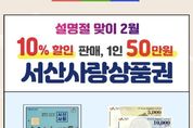 [ 중앙뉴스미디어 ] 충남 서산시는 2026년 2월 설 명절을 맞아 지역 경제 활성화를 위해 서산사랑상품권을 150억 원 규모로 확대 발행한다고 밝혔다. 시는 2월 한시적으로 서산사랑상품권 1인당 구매 한도액을 기존 40만 원에서 50만 원으로 상향하고, 할인율은 기존과 동일한 10%를 적용한다. 모바일(카드) 상품권은 오는 2월 1일 오전 6시부터 ‘지역사랑상품권 chak’ 앱을 통해 구매할 수 있다. 지류 상품권은 2월 2일 농축협, 신협, 수협, 새마을금고, 우체국, 하나은행 등 판매대행점 58개소 개점 시간부터 구매할 수 있다. 구입한 상품권은 관내 가맹점 7,575개소에서 사용할 수 있으며, 자세한 사항은 서산시 누리집에서 확인할 수 있다. 이완섭 서산시장은 “이번 서산사랑상품권의 확대 발행이 설 명절을 맞은 시민의 가계 부담을 덜고, 지역 내 소비 촉진을 통해 소상공인 매출 증대와 골목상권 활성화로 이어지길 바란다”라고 말했다. [뉴스출처 : 충청남도 서산시]