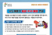 [ 중앙뉴스미디어 ] 울진군 맑은물사업소는 본격적인 동절기 한파에 대비해 수도계량기 및 수도관 동파로 인한 주민 불편을 최소화하고자 대대적인 예방 홍보와 긴급 복구 대책 추진에 나섰다. 군은 오는 3월 15일까지를‘겨울철 수도시설 동파방지 대책 기간’으로 정하고, 상수도 분야 긴급 대책반을 운영한다. 대책반은 동파 사고 발생 시 신속한 복구와 비상 급수를 지원해 주민들의 생활용수 공급에 차질이 없도록 대응할 계획이다. 특히, 겨울철 동파 사고를 예방하기 위해 주민들에게 다음과 같은 행동 요령을 적극 안내하고 있다. 먼저 계량기함 밀폐 및 보온관리가 중요하다. 계량기함 내부의 수도관 관통구 등 틈새를 밀폐하고, 헌 옷이나 에어캡 등 젖지 않은 보온재로 내부를 가득 채워야 한다. 외부 뚜껑 부분은 비닐 등으로 덮어 찬 공기 유입을 차단하는 것이 중요하다. 또한 혹한이 예상되거나 장기간 외출 시에는 수도꼭지를 조금 열어 수돗물을 가늘게 흐르하는 소량 퇴수를 통해 관로 내 결빙을 효과적으로 예방할 수 있다. 아울러 계량기나 수도관이 얼었을 경우에는 50도