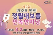 [ 중앙뉴스미디어 ] 경기도 연천군은 2026년 정월대보름을 맞아 민족의 세시풍속을 계승하고 주민의 건강과 안녕을 기원하기 위해 오는 3월 2일 오후 2시 연천 전곡리 유적 유휴부지에서 '제2회 연천 정월대보름 민속한마당' 행사를 개최한다고 밝혔다. 올해로 두 번째를 맞는 이번 행사는 군민에게 풍성한 볼거리와 즐길거리를 선사하고자 열리는 연천군의 대표 정월대보름 기념 행사다. 행사는 개회식을 시작으로 ▲전통 연 시연 ▲연천문화원 문화공연 ▲연천군체육회 레크리에이션 ▲대형 연 시연 ▲댄스·버스킹 공연 ▲LED 연 시연 순서로 진행된다. 이어 연천군을 대표하는 화진뜰 풍물패와 아미산 울어리 풍물패가 올 한 해의 행복과 풍년을 기원하는 공연을 펼칠 예정이다. 행사의 대미는 달집 태우기로 장식된다. 행사장 중앙에 마련된 거대 달집에 주민들이 직접 작성한 소원지를 매달고 불을 밝혀 액운을 태우고 복을 기원하는 전통 달맞이 행사가 진행된다. 행사 기간 중에는 ▲연 날리기 체험 ▲LED 쥐불놀이 체험 ▲소원지 쓰기 ▲전통놀이 체험 등 다양한 체험 프로그램이 상시 운영되며, 부럼을 비롯한 각종 정월대보름 먹거리도 마련돼 더욱