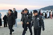 [ 중앙뉴스미디어 ] 울진해양경찰서(서장 배병학)는 2026년 병오년(丙午年) 새해를 맞아 해맞이 인파가 대거 몰릴 것으로 예상됨에 따라, 지난해 12월 31일부터 올해 1월 1일까지 해맞이 안전관리 대책을 집중 실시했다. 이번 해맞이 기간에는 고속도로·철도 교통망 확충과 지역별 해맞이 행사 개최로 관광객 방문이 증가했으며, 기상 여건이 비교적 양호해 연인원 2만여 명 이상이 주요 해맞이 명소를 찾은 것으로 파악됐다. 이에 울진해경은 지난해 12월 31일 오후 9시부터 올해 1월 1일 오전까지 집중 안전관리 기간을 운영하고, 특히 해맞이 당일 오전 6시부터 9시까지를 중점 관리 시간으로 지정해 총력 대응에 나섰다. 이 기간 동안 울진해경은 경찰관과 함정·차량 등 을 총동원해 연안 및 해상 전반에 대한 입체적인 안전관리를 실시했다. 파출소별 안전관리 인력을 증강 배치하고, 연안 경비함정을 추가 배치해 해안가 안전관리 지원을 강화했다. 울진구조대는 후포항 내 대기하며 상황 발생 시 즉각 대응할 수 있는 태세를 유지했다. 해맞이 당일 오전에는 지휘관이 직접 주요 현장을 방문해 안전관리 실태를 점검했으며,