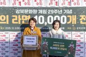 [ 중앙뉴스미디어 ] 강북구의회 김명희 의장(번1·2동, 수유2·3동)은 지난 12월 2일, 강북문화예술회관 소나무홀에서 열린 강북문화원 개원 29주년 기념 ‘사랑의 라면트리’ 행사에 참석해 지역 이웃을 위한 나눔 활동에 함께했다. ‘사랑의 라면트리’ 행사는 강북문화원이 주민들로부터 받아온 관심과 성원을 어려운 이웃들에게 되돌리기 위해 마련한 사회공헌 행사로, 올해로 3회째를 맞았다. 한국마사회 지원사업으로도 선정되며 지역의 대표적 나눔 행사로 자리잡았다. 행사는 라면 전달식을 시작으로 설장구 식전공연, 유공자 표창, 문화공연 등 다양한 프로그램으로 채워졌다. 특히 올해는 강북미술협회가 20여 점의 작품을 기증해 ‘그림 기부전’을 함께 열며, 문화와 나눔을 결합한 새로운 형태의 기부가 주목을 받았다. 김명희 의장은 황정희 문화원장과 함께 라면 전달식에 참석해 정성을 모은 라면 1만 개를 어려운 이웃에게 전달할 준비를 마쳤으며, ‘2025 서울시 구의원 한마음 체육대회’에서 받은 ‘아차상’ 상금도 문화원에 기부해 뜻을 더했다. 김명희 의장은 “3년째 이어지는 ‘사랑의 라면트리’가 이제는 지역의 마음을