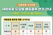 [ 중앙뉴스미디어 ] 울산 동구가 2026년 1월 1일부터 월요일, 목요일의 재활용품 수거 품목을 변경 시행한다고 밝혔다. 지금까지는 월요일, 목요일은 기타 재활용품, 화요일은 스티로폼·공병, 수요일은 비닐, 금요일은 투명 페트병을 수거하고 있다. 2026년 1월 1일부터는 월요일은 기타 재활용품에서 종이류로, 목요일은 기타 재활용품에서 플라스틱 및 캔·고철로 변경되며 나머지 화요일, 수요일, 금요일은 현행 품목을 그대로 유지할 예정이다. 배출 시간은 수거일 전날 저녁 8시부터 자정 12시까지이며 내 집 앞에 배출해야 한다. 기존 수거 체계상 ‘기타 재활용품’이란 용어가 주민들의 해석에 혼란을 초래하여 재활용 전 품목 혼합 배출의 문제가 꾸준히 제기되어왔으며, 또한 월요일은 재활용품 배출량이 많아 현장에서 근무하는 근로자들의 인력적 한계로 재활용품이 미수거되는 등의 민원이 지속적으로 발생했다. 동구청은 이달부터 변경된 체계의 조기 정착과 주민들의 혼란 방지를 위해 현수막, 전단지 등을 활용해 주민들에게 적극 알리고, 구청 홈페이지를 비롯해 소식지, 구청 SNS를 통해서도 집중적인 홍보에