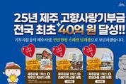[ 중앙뉴스미디어 ] 제주특별자치도는 올해 고향사랑기부금이 4일 기준 전국 최초로 단년도 40억 원(40억 700만 원, 3만 9,454건)을 넘어섰다고 밝혔다. 이는 전년 동기 대비 모금액 114%(19억 원 → 40억 원), 모금 건수 134%(1만 6,871건 → 3만 9,454건) 증가한 수치로, 제주 고향사랑기부제가 시행 3년차에 접어든 올해도 독보적 성장세를 이어가고 있다. 제주도는 2023년 18억 원(모금 건수 전국 1위)으로 전국 2위, 2024년 36억 원으로 전국 1위를 기록했으며, 올해도 12월 초 40억 원을 넘어서며 선도 지자체로 자리매김했다. 이러한 성과는 △철저한 답례품 품질관리 △전국 최초 기부자·연속기부자 예우정책 △제주 가치 보존 기금사업 확대 등 차별화 전략이 주요 요인으로 분석되고 있다. 제주도는 지역 특산물 중심의 고품질 답례품 발굴과 신속 배송, 민원 대응 강화로 기부자 만족도를 높이고 있으며, 제주경제통상진흥원과 협업해 모니터링 체계를 고도화하는 등 답례품 관리의 전문성을 강화하고 있다. 11월 13일부터 답례품으로 연말 한정 ‘스페셜 감귤 패