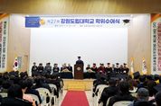[ 중앙뉴스미디어 ] 강원도립대학교는 2월 13일 11시, 대학 다목적관에서 제27회 학위수여식을 진행했다. 이번 학위수여식에서 졸업생 230명이 영광스러운 학위를 수여받았으며, 졸업생과 학부모를 비롯해 김진태 강원특별자치도지사, 강원특별자치도의회 의원 등 약 400여 명이 참석해 졸업의 기쁨을 함께 나눴다. 이날 전체 수석을 차지한 레저스포츠과 정소영 학생이 강원특별자치도지사 표창 수상의 영예를 안았으며, 강원특별자치도의회 의장 표창은 바리스타제과제빵과 옥지훈 학생과 사회복지과 고요엘 학생에게 수여됐다. 또한 각 학과 수석 10명에게는 강원도립대학교 총장 표창이 수여됐으며, 우수한 학업 성취와 학과 활동을 통해 대학 발전에 기여한 22명의 학생들에게는 유관기관 및 단체장 표창이 수여됐다. 최종균 총장은 축사를 통해 졸업생들의 노력과 성취를 격려하며 “졸업생들은 지식뿐 아니라 사회가 요구하는 실력과 책임감을 함께 갖춘 인재”라며 사회 진출에 대한 기대를 전했다. 이어 졸업생들에게 끊임없는 도전과 자기 성찰의 중요성을 강조하며, “주변의 기대보다 자신의 내면의 목소리에 귀 기울이며 자신만