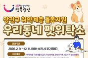 [ 중앙뉴스미디어 ] 광진구가 갑작스러운 상황으로 인해 반려동물 임시보호가 필요한 취약계층을 위해 ‘우리동네 펫위탁소’를 운영한다. ‘우리동네 펫위탁소’는 사회적 약자가 질병·입원, 생계곤란, 주거 이전 등으로 반려동물을 안전하게 맡겨야 할 때 주민을 대신해 일정기간 돌봄 서비스를 받을수 있도록 지원하는 사업이다. 반려견 또는 반려묘 1마리당 연간 최대 10일까지 이용할 수 있으며, 반려동물의 종류와 체중에 따라 1일 최대 5만 원까지 위탁비를 지원한다. 장기입원 등 구에서 인정하는 특별한 사유가 있을 경우 최대 50일까지 연장 지원한다. 대상은 광진구에 주민 등록이 되어있는 기초생활수급자, 차상위계층, 한부모 가족과 범죄피해자(보호시설 입소자)와 1인가구다. 지원기간은 1마리당 연간 최대 10일까지이며 1인가구는 반기별 최대 5일까지 지원받을 수 있다. 특히 올해부터는 반려견뿐 아니라 반려묘까지 동물 등록을 완료한 경우에만 지원이 가능하도록 기준을 강화해서 책임있는 반려문화 정착을 유도한다. 신청을 원하는 주민은 우리동네 펫위탁소를 방문해 신청하면 된다. 주민등록등본 등 취약계층 증빙