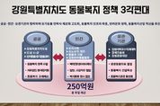 [ 중앙뉴스미디어 ] 강원특별자치도는 2월 20일 오후 2시 강릉에 위치한 도 반려동물지원센터에서 ‘강원형 동물복지 정책’을 발표하고, 복지‧의료‧산업‧관광을 아우르는 4대 전략을 본격 추진한다고 밝혔다. - 이번 정책은 반려동물 양육이 일상화된 사회 변화에 대응해 공공의 역할을 강화하기 위해 마련됐다. 현재 전국 반려 가구는 591만 가구로 전체 가구의 25% 이상을 차지하고 있으며, 반려동물(개‧고양이)은 약 800만 마리 수준으로 추산된다. - 이 자리에는 김진태 도지사를 비롯해 강원경제진흥원, 강원관광재단, 도수의사회장, 강원대 수의과대학장, 군견훈련소 교관, 강릉 주민, 강릉동물보호센터장 등 각계 전문가와 현장 관계자들이 참석했다. 참석자들은 정책 방향을 공유하고 반려동물지원센터 공간 확대 필요성, 입양 이후 보호자와 유기견을 위한 교육‧관리 지원 강화 방안 등 다양한 의견이 논의됐다. 김진태 지사는 “동물복지를 하나의 정책 아젠다로 삼아 보다 체계적으로 추진하려고 한다”며, “이를 위해 각 기관과 전문가들의 협력이 반드시 필요하다”고 밝혔다. 이어 “이곳 반려동물