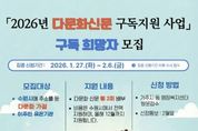 [ 중앙뉴스미디어 ] 수원특례시가 다문화가족의 한국 생활 적응을 돕기 위해 ‘다문화신문 구독 지원 사업’ 대상자를 모집한다. 언어·문화적 차이로 정보 접근에 어려움을 겪는 다문화가족에게 다문화 신문 구독을 지원해 정책·생활·교육·복지 등 한국 생활에 필요한 정보를 다국어로 제공하는 사업이다. 수원시에 주소를 둔 다문화가족, 이주민 지원 유관기관 등이 신청할 수 있다. 선정된 대상자에게는 3월부터 12월까지 월 2회 다문화신문을 무료로 보급한다. 집중 신청 기간은 2월 6일까지다. 거주지 동 행정복지센터를 방문해 신청하면 된다. 2월 6일 이후에도 상시 신청할 수 있지만, 모집 인원이 초과되면 대기자로 관리한다. 수원시 관계자는 “다문화신문은 언어소통이 어려운 다문화가족에게 한국 생활에 필요한 각종 정보를 다국어로 제공하는 사업”이라며 “다문화가정의 안정적인 지역사회 정착에 실질적인 도움이 되길 바란다”고 밝혔다.