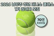[ 중앙뉴스미디어 ] 남양주시는 27일부터 내달 2일까지 ‘2026 남양주 청년 테니스 클래스 1기’ 참여자를 모집한다고 밝혔다. 남양주 청년 테니스 클래스는 청년들의 건강한 여가 활동과 교류 활성화를 장려하기 위해 마련한 프로그램으로, 지난해 모집 당시 400명 이상이 지원하며 청년들에게 높은 관심을 받은 바 있다. 1기는 2월 7일부터 3월 28일까지 남양주체육문화센터 테니스장에서 매주 토요일 오후 7시부터 9시까지 총 8주간 운영된다. 참가자는 수준별 맞춤 강습을 통한 전문 강사의 지도를 받게 된다. 모집 대상은 관내 거주하는 만 19세부터 39세까지의 청년이며, 총 70명을 선발할 예정이다. 참여 신청은 홍보자료 내 큐알(QR)코드를 통해 가능하며, 신청 동기 및 참여 의지 등을 종합적으로 심사해 최종 참여자를 선정한다. 특히 올해 청년 테니스 클래스는 연간 3기로 확대 운영돼 총 210명의 청년이 참여할 수 있다. 또한 클래스가 없는 날에도 매주 토요일 오후 7시부터 10시까지 희망하는 청년들이 자유롭게 테니스를 즐길 수 있도록 테니스장을 무료로 개방한다. 시 관계자는 “청년들